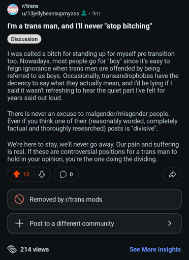It fucking sucks. There’s been a lot of discussion in other trans masc spaces about “transandrophobia” and this seems to absolutely demonstrate it. We aren’t treated seriously in spaces that should be welcoming for us.