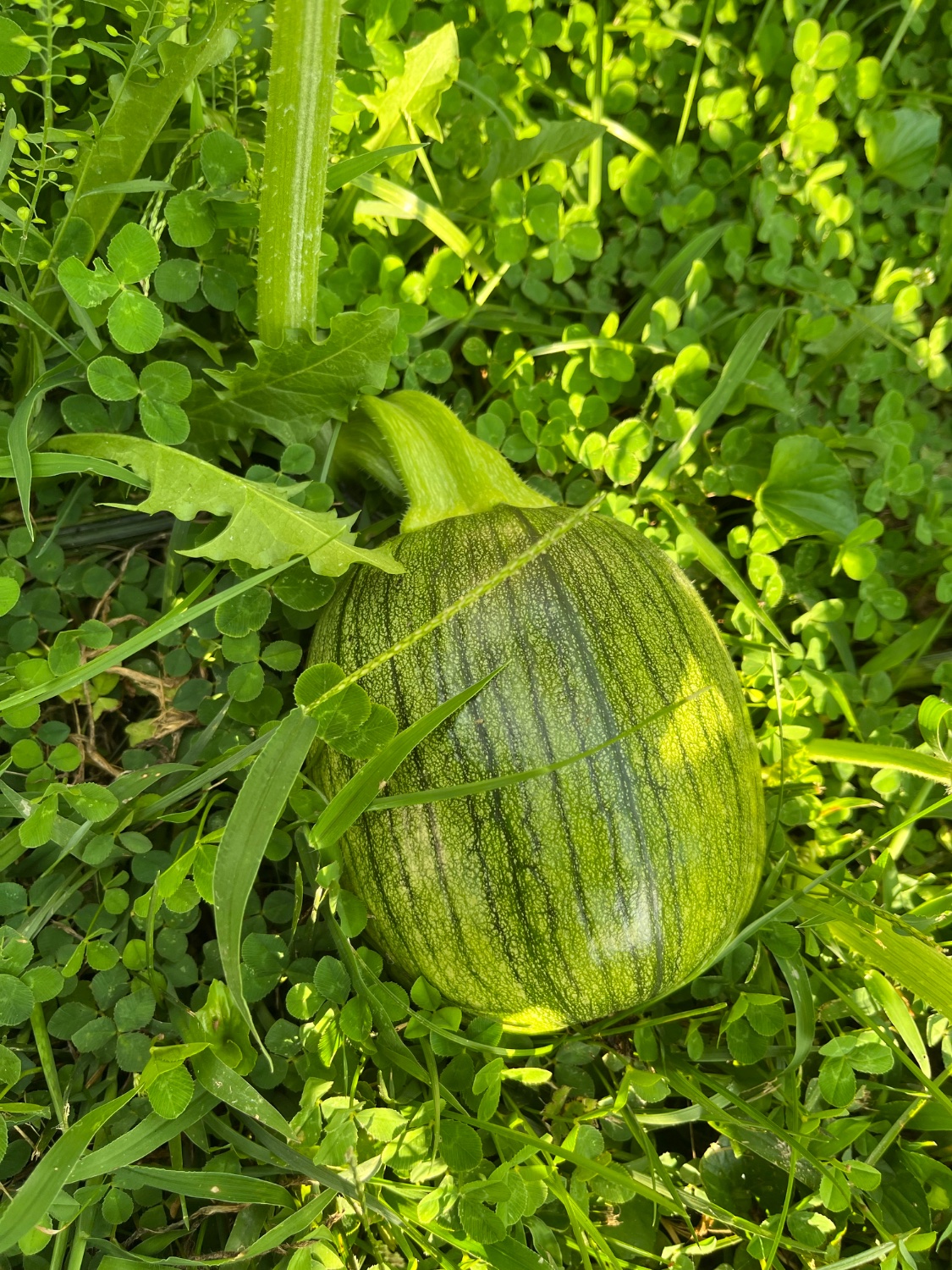 We have a couple of cucumber and squash plants and we think some kind of pumpkin or weird ass hybrid growing. We tossed a old pumpkin in the back of this plot last fall and it sprouted and grew these: