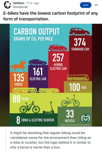 It’s marginal gains all the way here but genuinely if you’re an omnivore the E-Bike might work out more enviromentally conscious