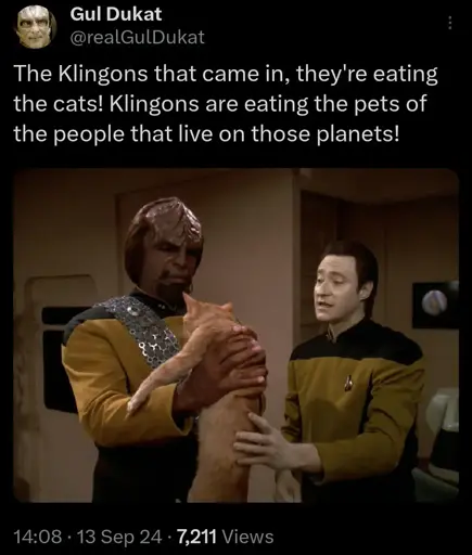 I feel like if Star Trek were truly trying to be authentic data would have eaten at least one cat in some I’ll-fated and misguided attempt To be more human.