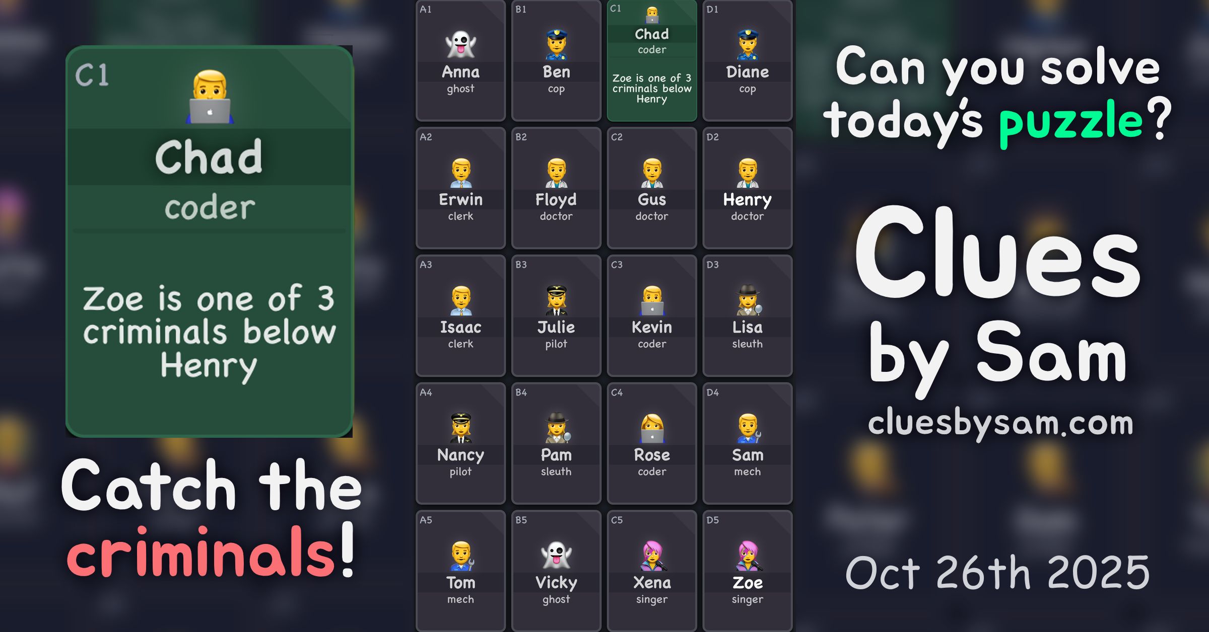 I solved the daily Clues by Sam (Oct 25th 2025) in less than 10 minutes 🟩🟩🟩🟩 🟩🟩🟩🟩 🟩🟩🟩🟩 🟩🟩🟩🟩 🟩🟩🟩🟩 https://cluesbysam.com/