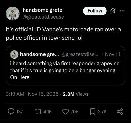 Also yes, I know technically it wasn’t the veep car that plowed the pig, but it’s still funny the dude probably died from getting plastered by his own coworker