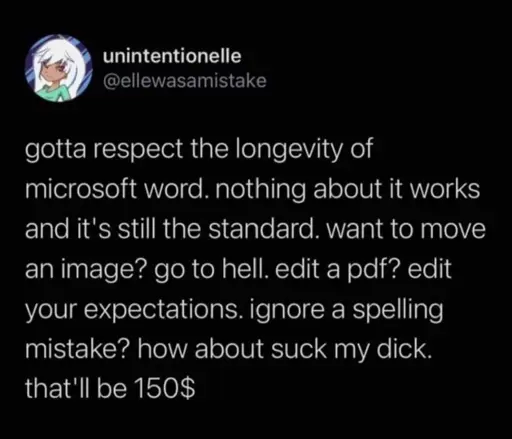 As for Outlook, I’ve never met anybody who actually likes it. The only thing it has going for it is that it’s available by default and it’s the only thing compatible with emails from other Outlook users. There’s a reason its nickname is “outhouse”. Outlook did the same things that Microsoft did with HTML and HTTP: embrace, extend, extinguish. They took de-facto and de-jure email standards and modified them so that only other Outlook users could use the email properly. They made sure that if you tried to use anything other than Outlook with Microsoft Exchange, that it wouldn’t quite work right.
