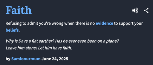 You see, “Faith” is belief in something without evidence or in spite of the evidence that exists.