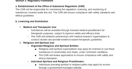 This bill establishes safe, controlled access through medical research partnerships, licensed religious organizations, and even a government-managed website for individual spiritual practitioners. It’s a pathway to freedom, safety, and economic growth while respecting cultural traditions.