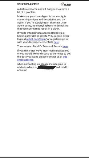 Wytchhazel08@lemmy.ml to SNOOcalypse - document, discuss, and promote the downfall of Reddit.@lemmy.ml · 2 years agoBlocked from accessing reddit cause of my vpnlemmy.mlimagemessage-square0linkfedilinkarrow-up11arrow-down10