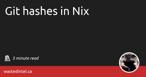 captainkangaroo@discuss.tchncs.de to NixOS@infosec.pubEnglish · 1 year agoGit hashes in Nixplus-squarewastedintel.caexternal-linkmessage-square0linkfedilinkarrow-up11arrow-down10