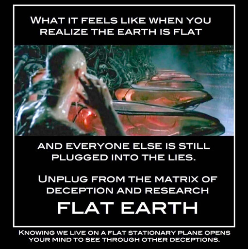 arrow-up11arrow-down1imageOnce You Awaken Everything Changeslemmy.mlrickjames@lemmy.mlM to Flat Earth@lemmy.ml · 5 years agomessage-square0linkfedilink