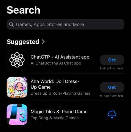 arrow-up17arrow-down1imageApple App Store suggests ChatGPT Chinese malware clone front and centerplus-squareeurope.pubtfm@europe.pubEnglish · 7 months agomessage-square15linkfedilink