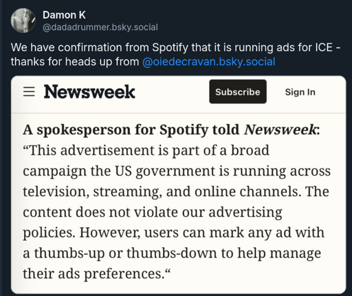 Bring_Back_Buggy_Whips@sh.itjust.works · 13 days agoIn Case You Needed Another Reason To ICE Spotifysh.itjust.worksimagemessage-square30linkfedilinkarrow-up1256arrow-down11