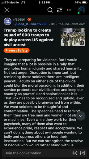 Salamence@lemmy.zipEnglish · 3 months ago"trump is using the military against us. we just need to remind soldiers that they protect our freedoms, then they wont kill us"plus-squarelemmy.zipimagemessage-square1linkfedilinkarrow-up130arrow-down13