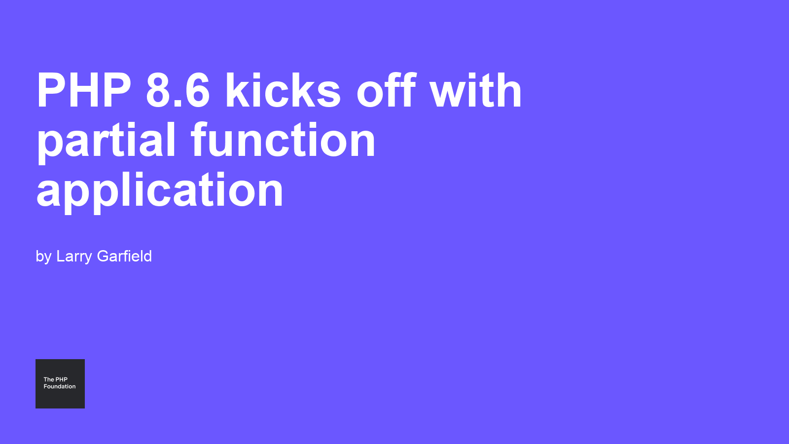 arrow-up15arrow-down1external-linkPHP 8.6 kicks off with partial function applicationplus-squarethephp.foundationNemeski@mander.xyz · 2 months agomessage-square0linkfedilink