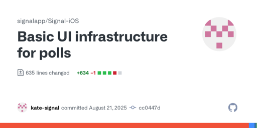 arrow-up119arrow-down1external-linkLooks like Signal is working on implementing pollsplus-squaregithub.comteolan@lemmy.worldEnglish · edit-22 months agomessage-square3linkfedilink