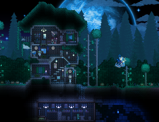 An old tree house I had built around the late 1.3 range or so. I recall basing that off a build in r/Terraria, but I can’t find it for the life of me and it’s been a good few years, so that’s one of those where it’ll look familiar but it’s tough to source.