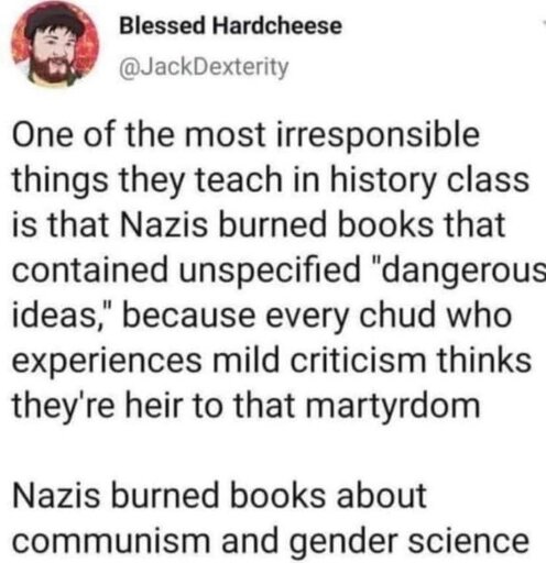 What is irresponsible about it? It is not the responsibility of empire to educate people on these things. It would be irresponsible to do so. Otherwise chuds would have one less weapon to bastardize rhetoric with while liberals ensure nazis get a voice.