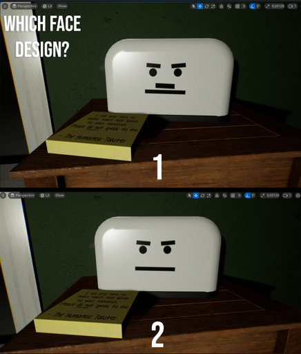 5·3 months agoThank you, I’m going for the body cam style because it looks very realistic and also fits with the game narrative - you are part of an experiment and somebody is documenting the footage